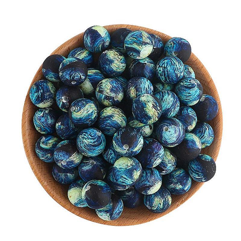 Wholesale 50pcs 15mm Water Transfer Starry Sky Pattern Silicone Beads