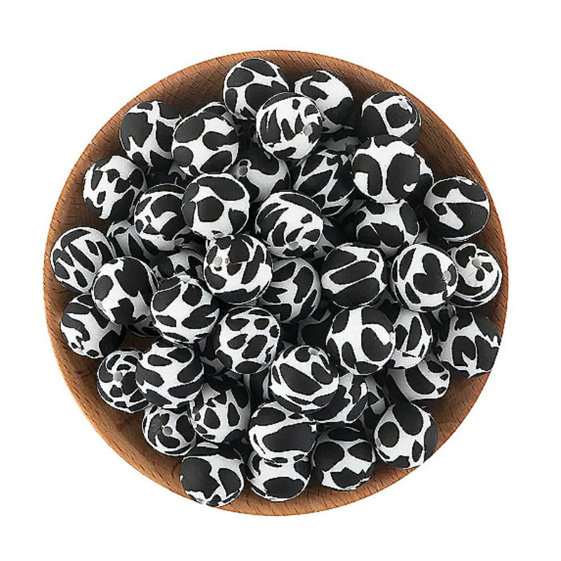 Wholesale 50pcs 15mm Water Transfer Big Cow Pattern Silicone Beads