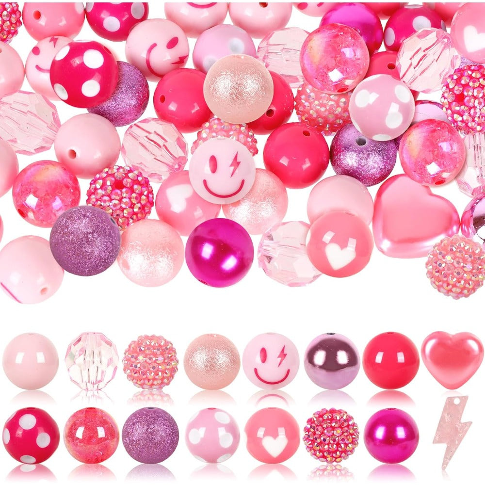Wholesale Whaline 50Pcs 20mm Mixed Preppy Heart Bubblegum Beads 16 Styles Pink White Spacer Bead Chunky Beads Set Jumbo Plastic Beads for Crafts and Jewelry Making Boutique DIY Craft Supplies