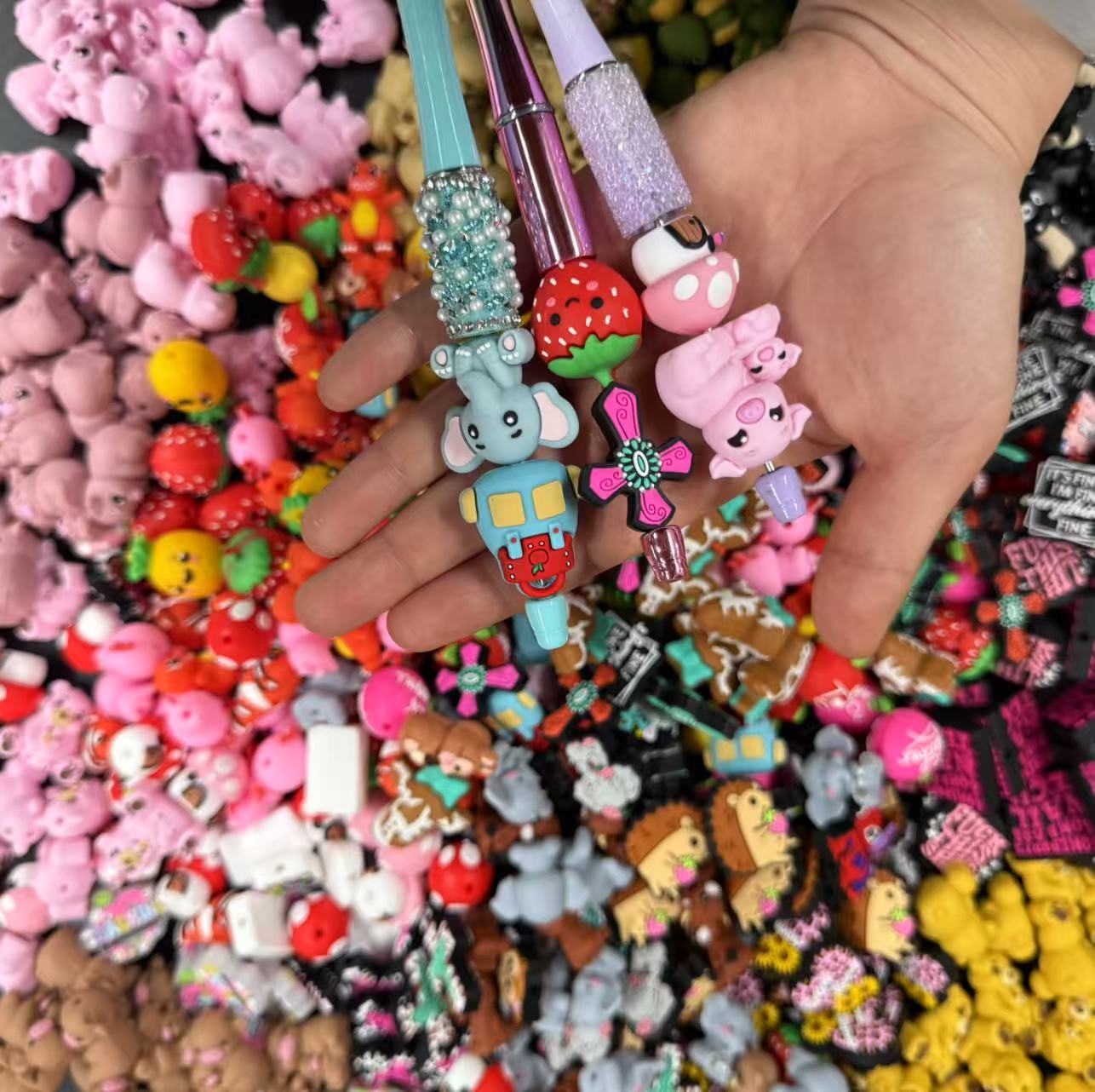 Wholesale 20pcs/50pcs 3D Random Cartoon DIY Creative Doll Ballpoint Pen Trendy Beads