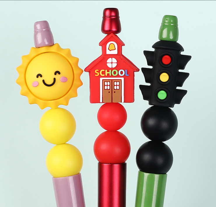 Wholesale 20pcs/50pcs 2D/3D Random Cartoon DIY Creative Doll Ballpoint Pen Trendy Beads