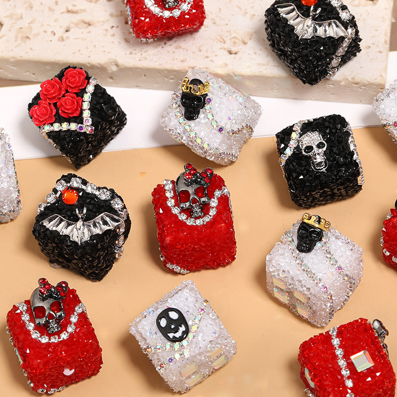 Wholesale 5PCS Halloween Full Diamond Devil Eye Bat Skull Acrylic Sugar Beads