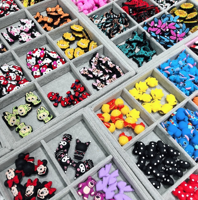 Wholesale 10pcs Creative Round Cartoon Flat Three-dimensional Rubber Beads