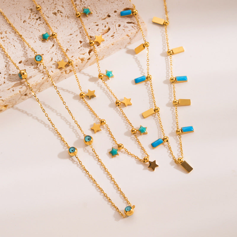 Wholesale stainless steel cross pendant double chain water drop oil titanium steel necklace