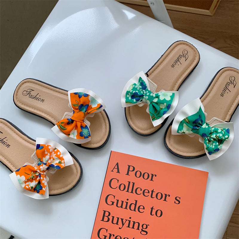 Wholesale Bowknot Children's Slippers Leather Baby Supplies