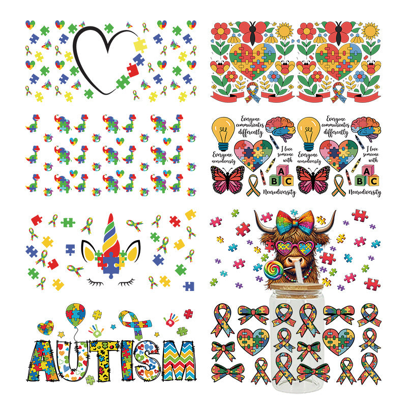 Wholesale Color Puzzle Autism Series 16oz Cup UV DTF Wraps