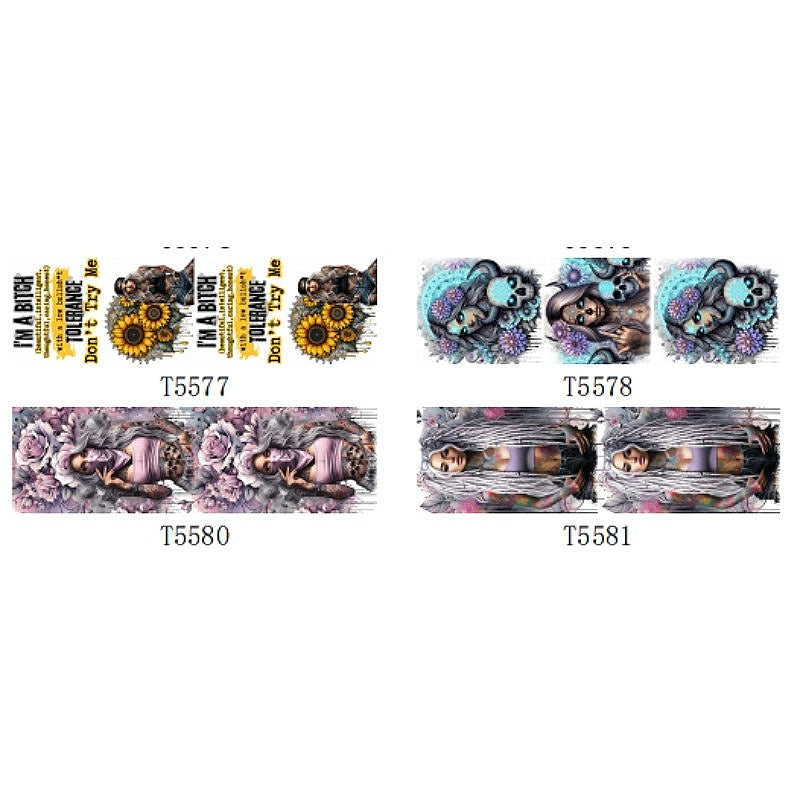 Wholesale 5pcs UV DTF Wrap Sunflower Girl Skull Pen Sticker
