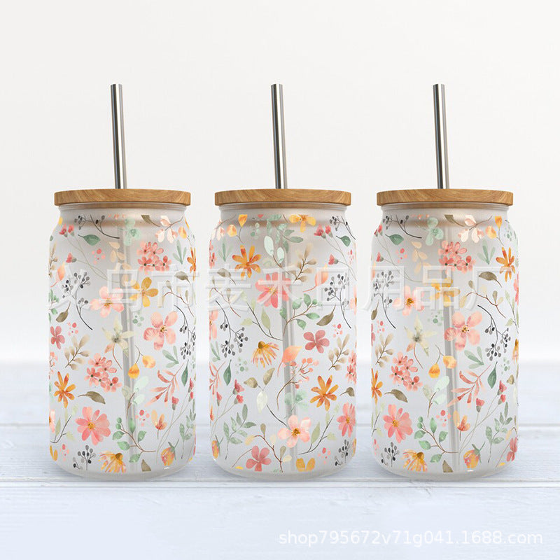 Wholesale Cute Smiley Flower Series Printing UV DTF Transfer Crystal Cup Sticker