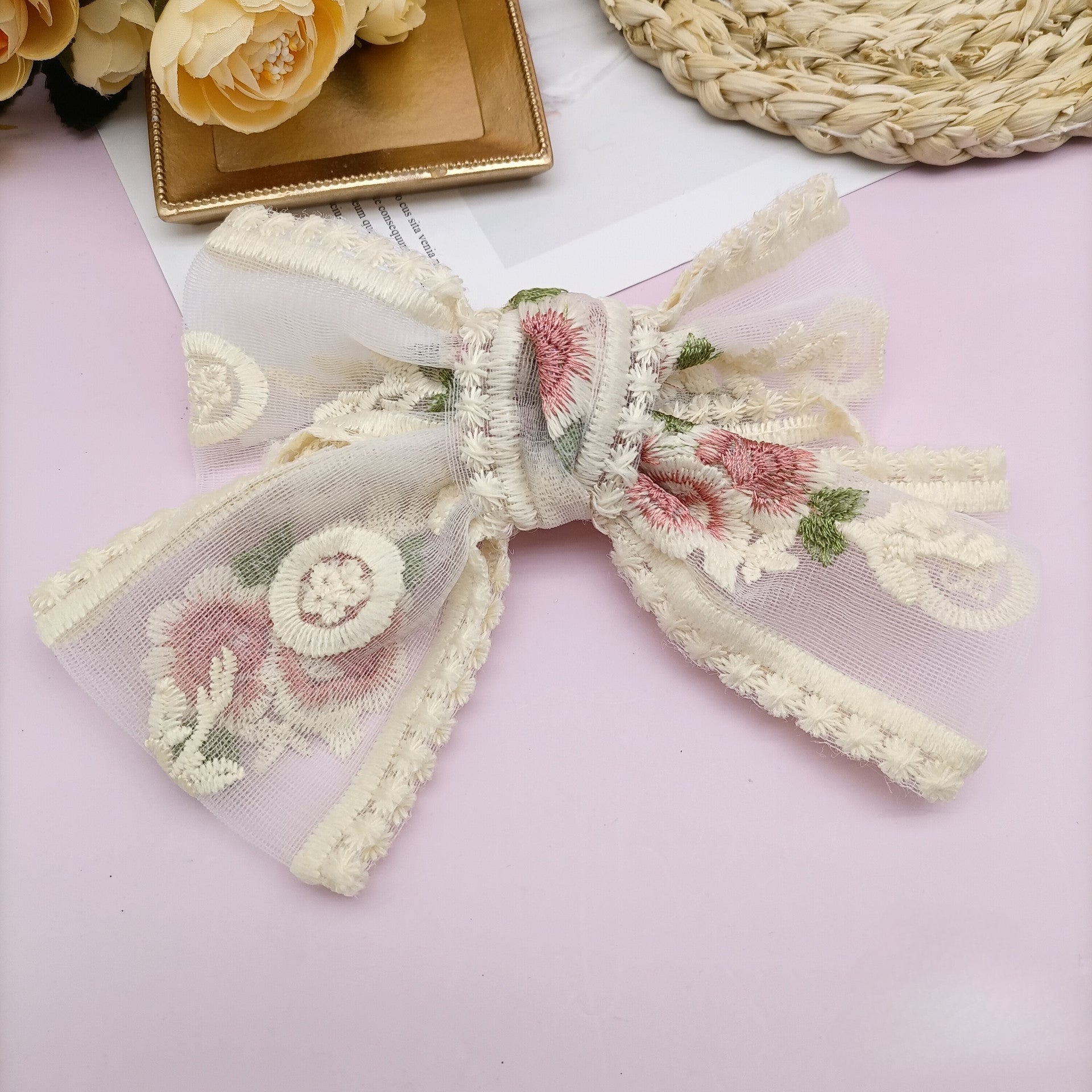 Wholesale Fabric Embroidery Oversized Bow Hair Clips