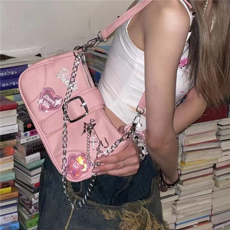 Wholesale Y2K PU Laser Heart Chain Armpit Bag