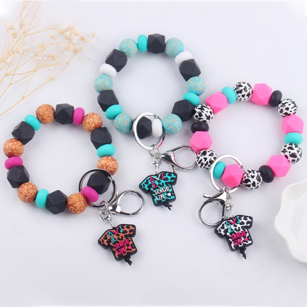 Wholesale 10pcs Cartoon Pink Leopard Cross Silicone Beads