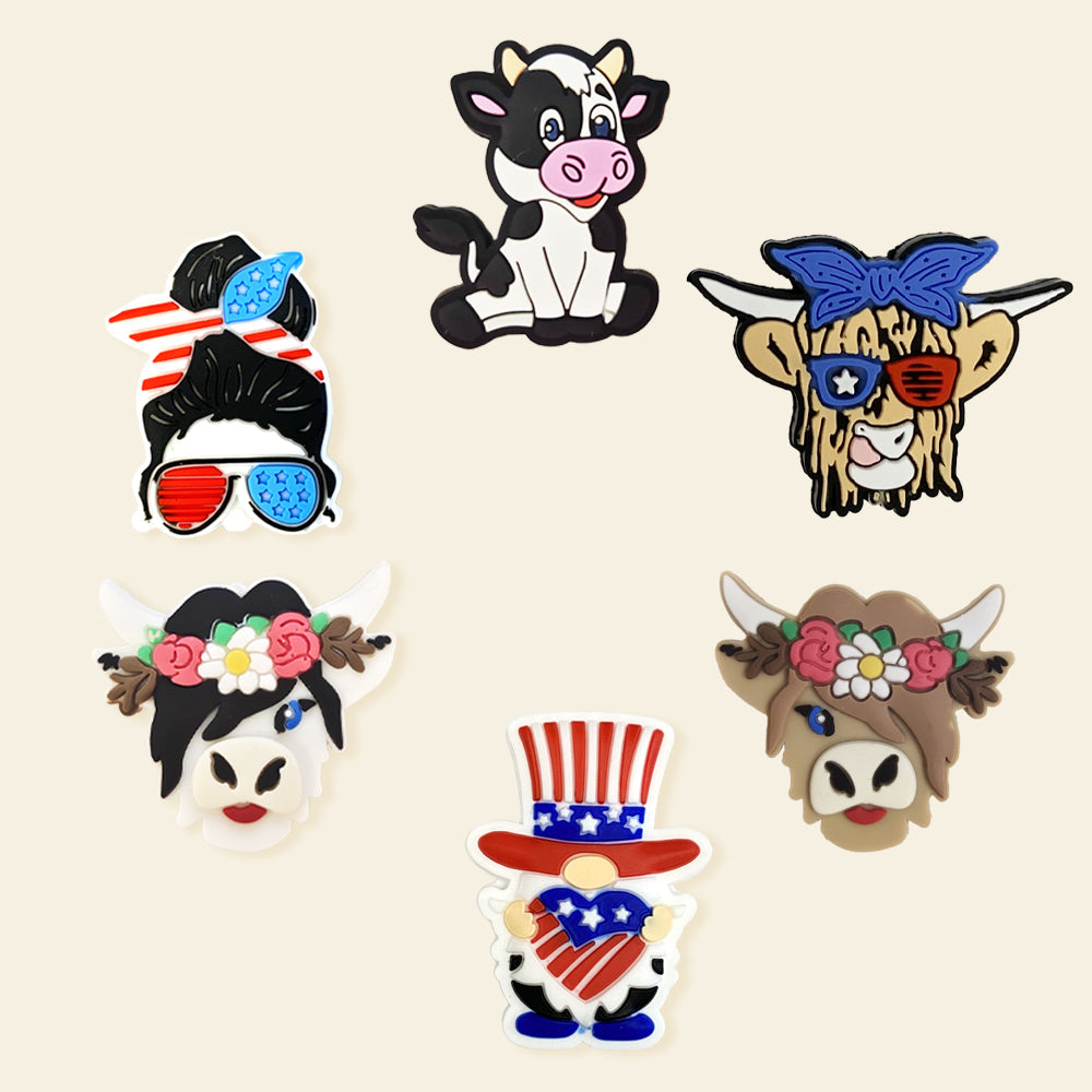 Wholesale 10pcs Cartoon Cow Pattern Silicone Focal Beads