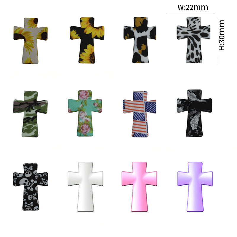 Wholesale 100PCS Cross Halloween Printing Adhesive Silicone Beads