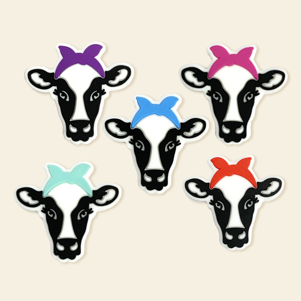 Wholesale 10pcs Cartoon Cow Pattern Silicone Focal Beads