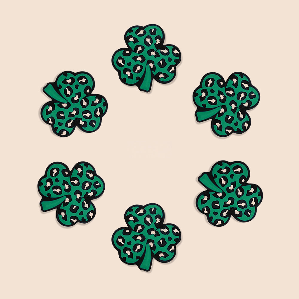Wholesale 10PCS Leopard Print Clover Silicone Beads
