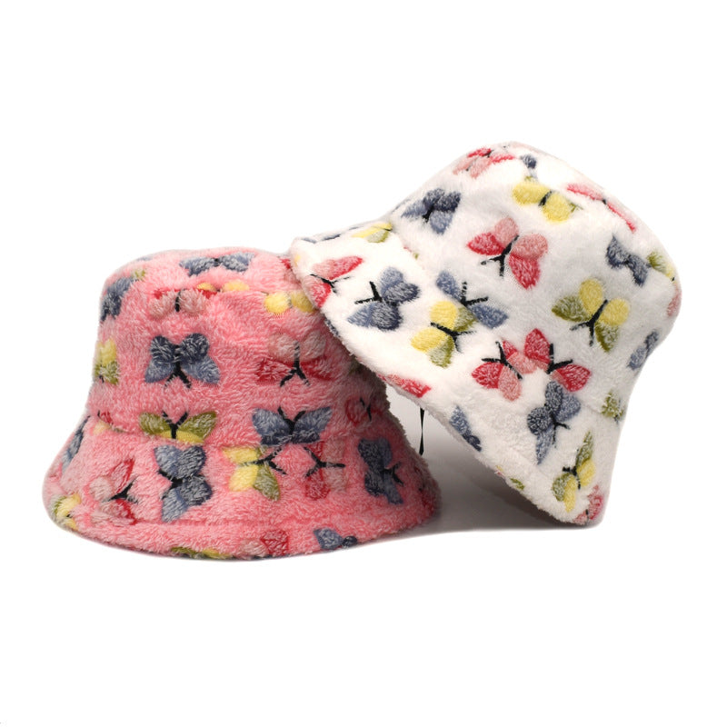 Wholesale Plush Winter Warm Butterfly Bucket Hat