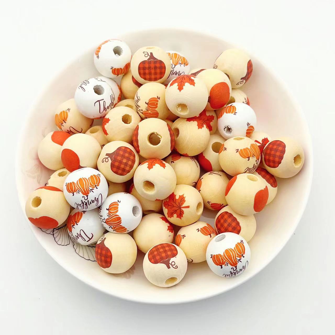 Wholesale 10pcs Autumn Thanksgiving Wooden Beads