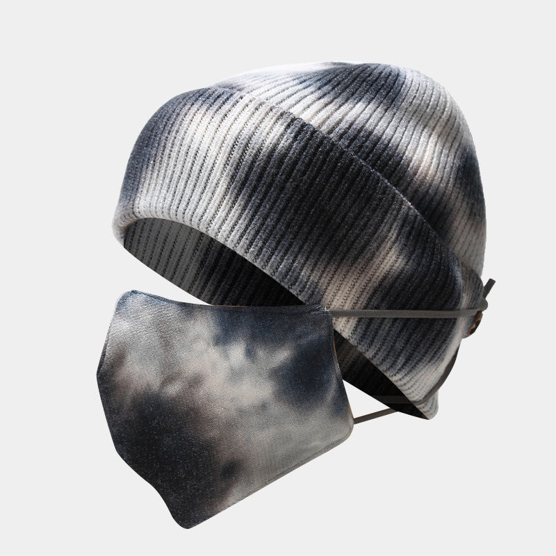 Wholesale 2023 Winter Tie Dye Hat Mask Set Outdoor Cold Resistant Face Protective Knitted Hat