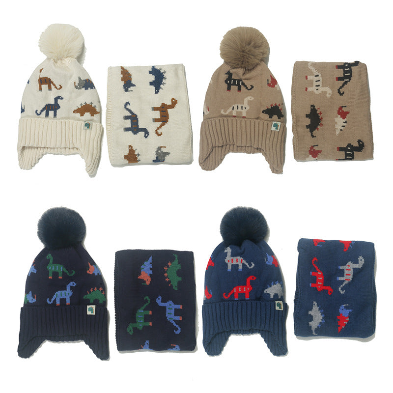 Wholesale Autumn and Winter Children's Dinosaur Plus Velvet Warm Acrylic Scarf and Hat Set of Two