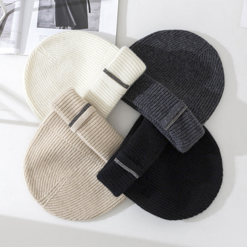 Wholesale Autumn and Winter Heavy Beaded Necklace Hole Thickened Pure Cashmere Knitted Hat