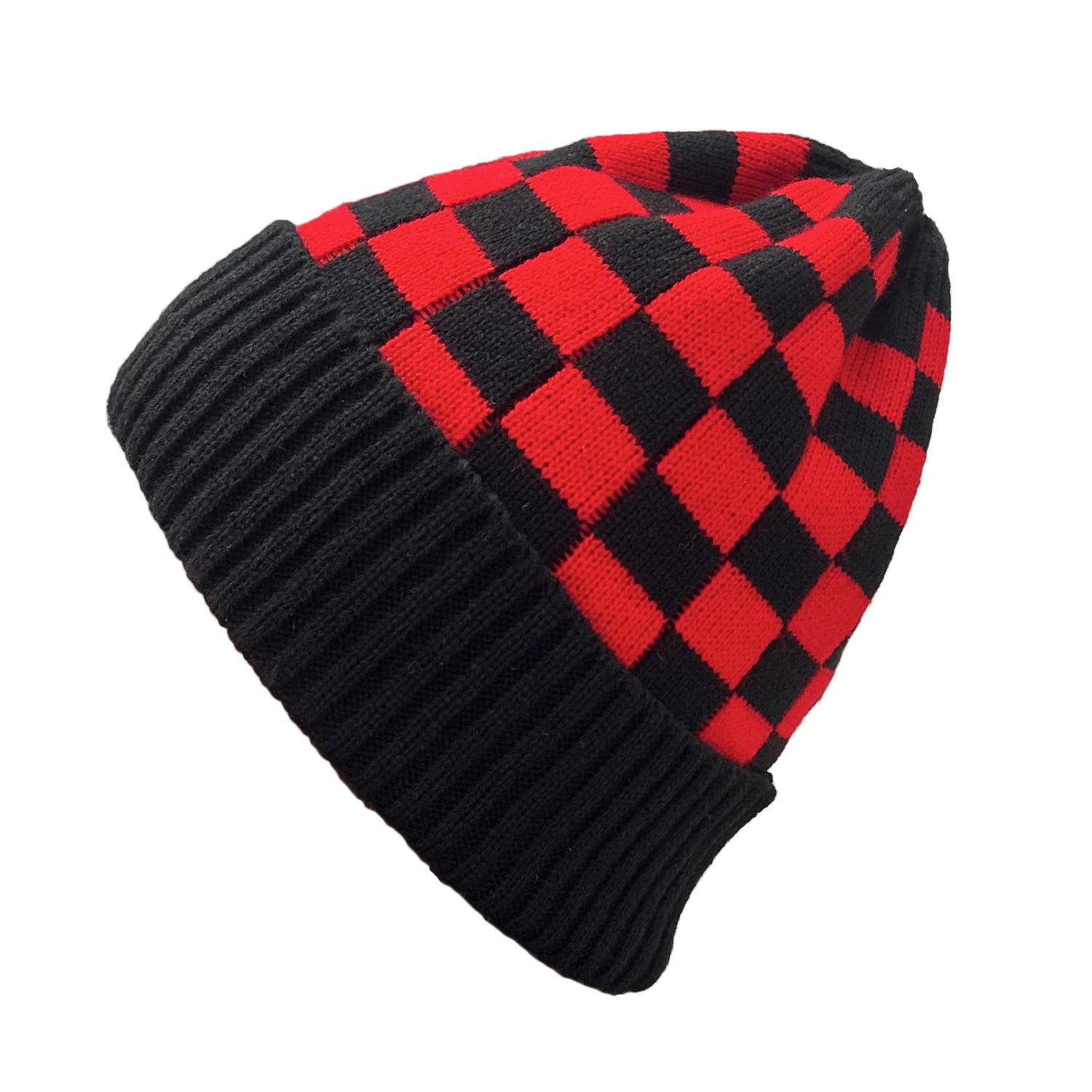 Wholesale Black and Red Plaid Knitted Hat Beanie