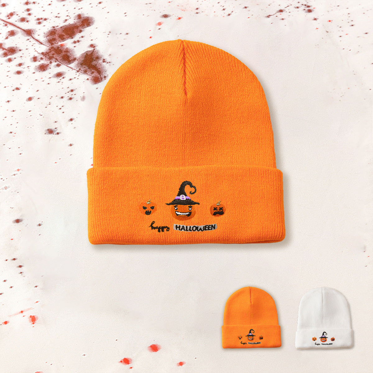 Wholesale Halloween Acrylic Embroidered Pumpkin Knitted Hat