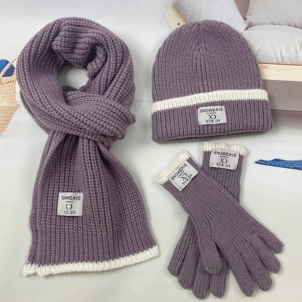 Wholesale Winter Knitted Wool Scarf Hat Gloves Three-piece Set