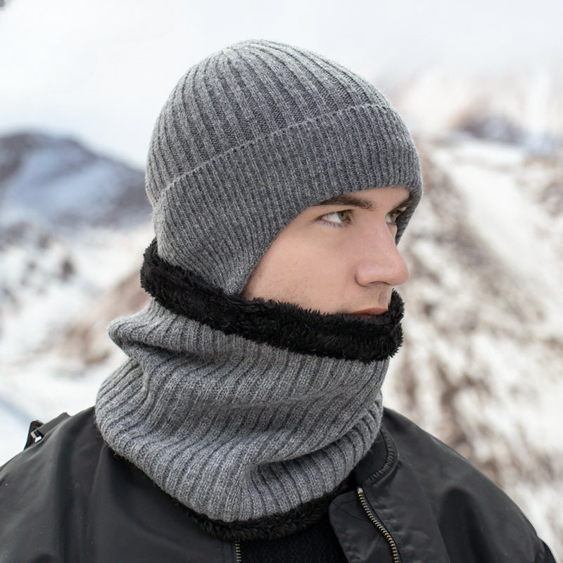 Wholesale Wool Warm Ear Protection Hat Scarf Winter Outdoor Plus Fleece Knitted Suit