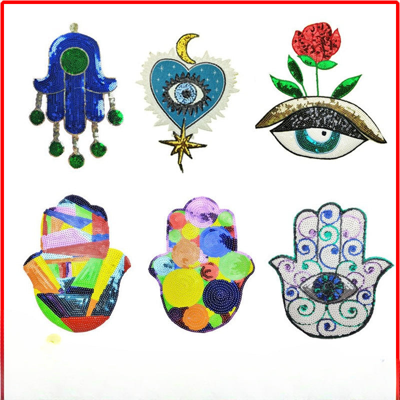 Wholesale 10pcs Clothing Accessories Bead Embroidery Palm Glitter Embroidery Denim Fabric Patch FS
