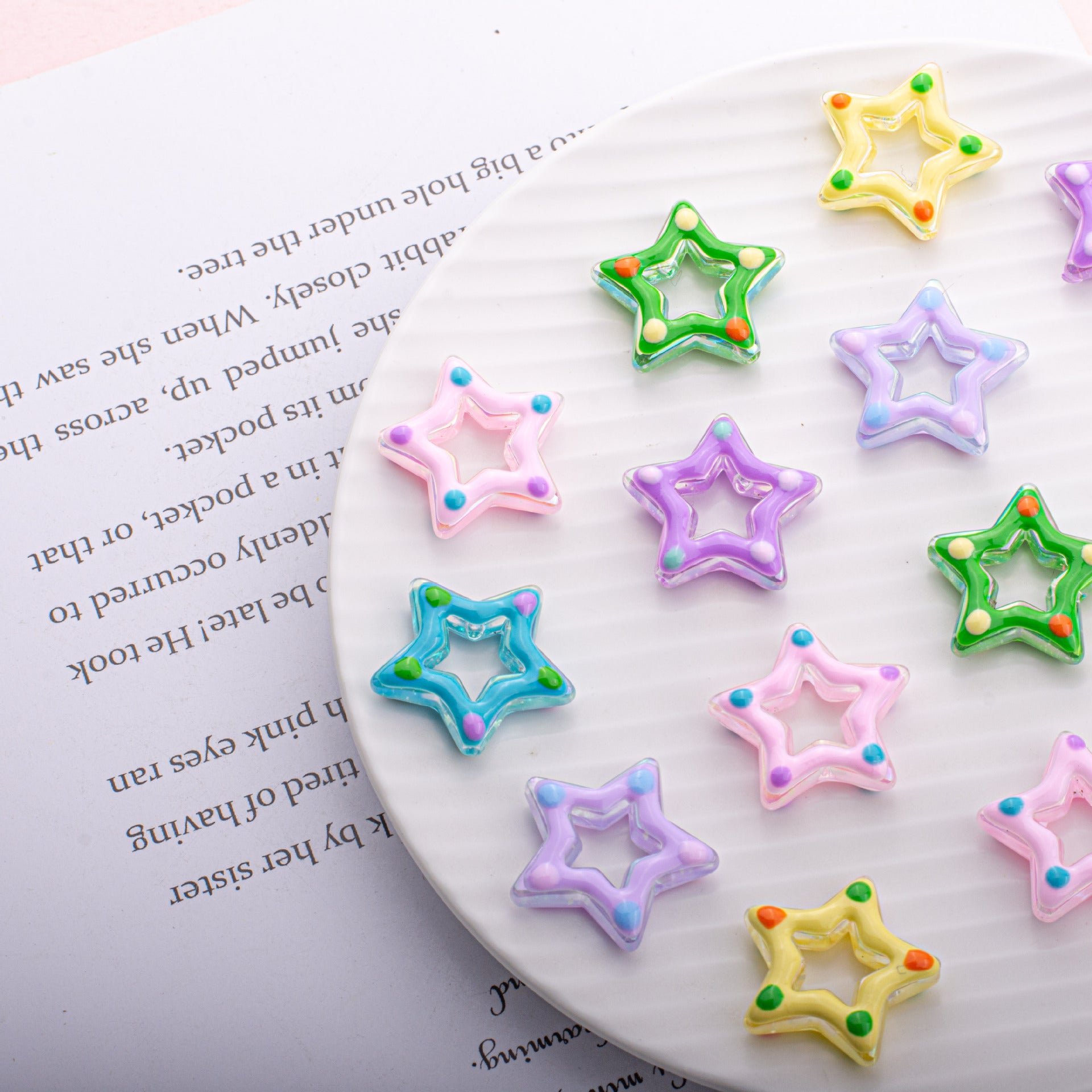 Wholesale 10PCS Pentagram Hollow Out Star Ring Acrylic Loose Beads