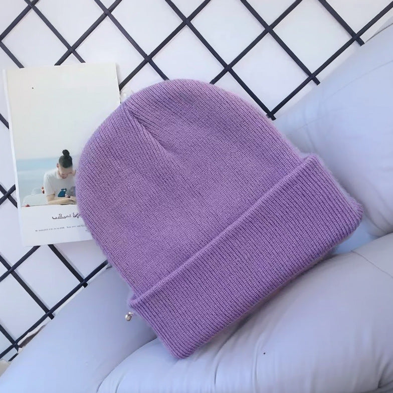 Wholesale Acrylic plain solid color embroidered beanie windproof earmuffs warm knitted beanie to keep out the cold
