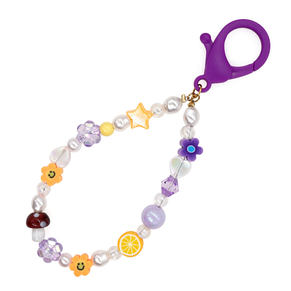 Wholesale Boho Pentagram Smiley Face Rice Beads Acrylic Beaded Lanyard Keychain