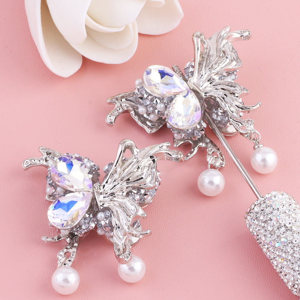 Wholesale 5pcs Butterfly zircon pearl diamond ball Acrylic Beads
