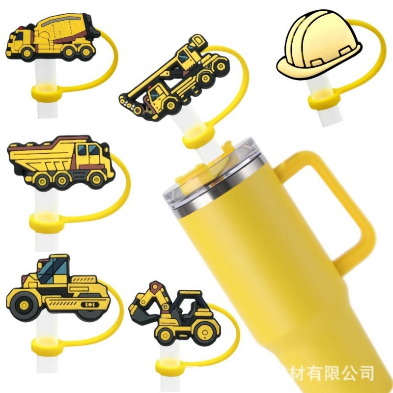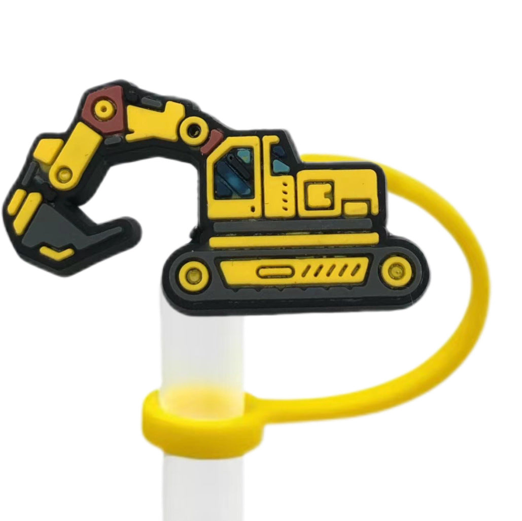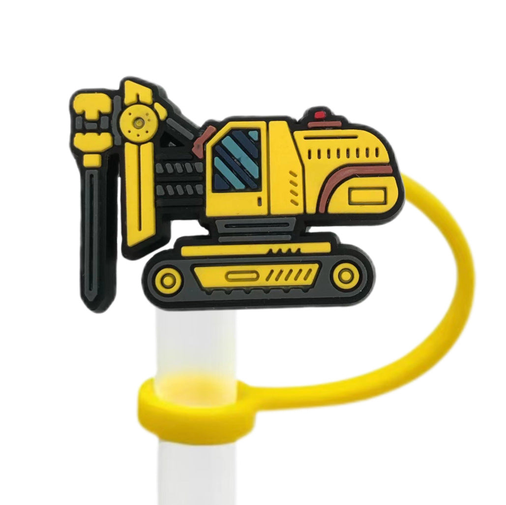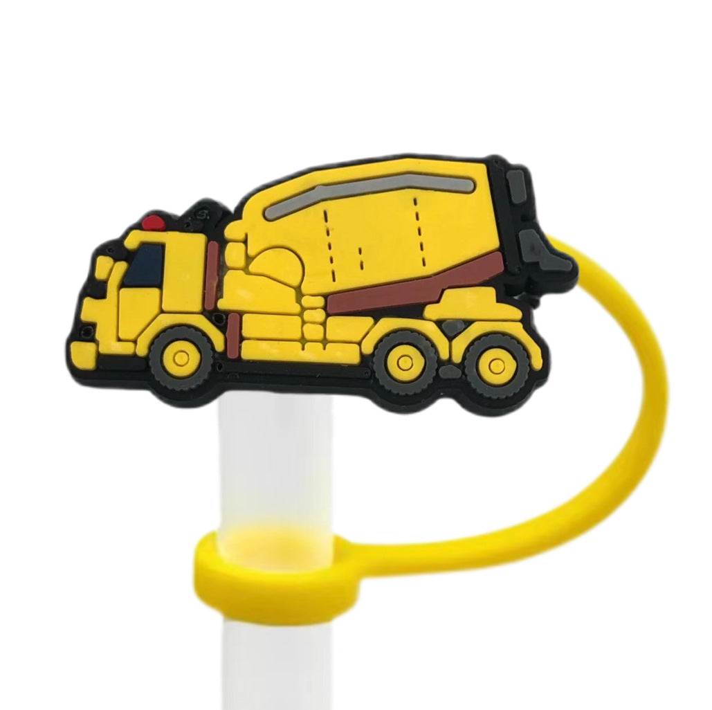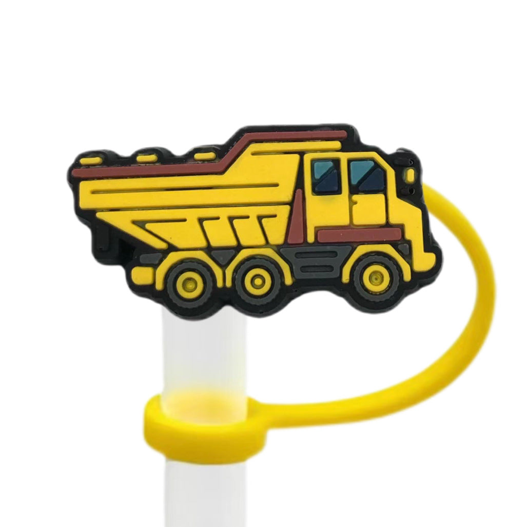 Wholesale 10pcs Cartoon Yellow Dustproof and Spillproof Children's Truck Excavator Straw Cover
