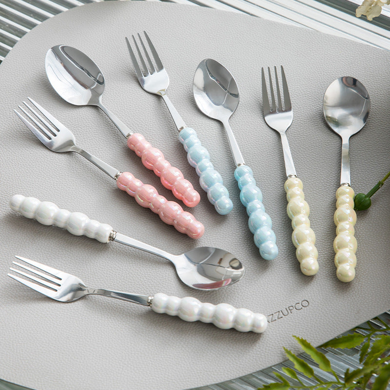 Wholesale Ceramic Pearl Handle Stainless Steel Knives, Forks, and Spoons