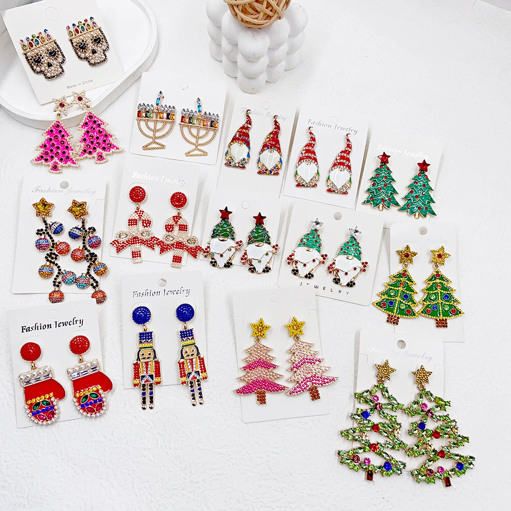 Wholesale Christmas Cartoon Faceless Doll Red Guard Diamond Earrings