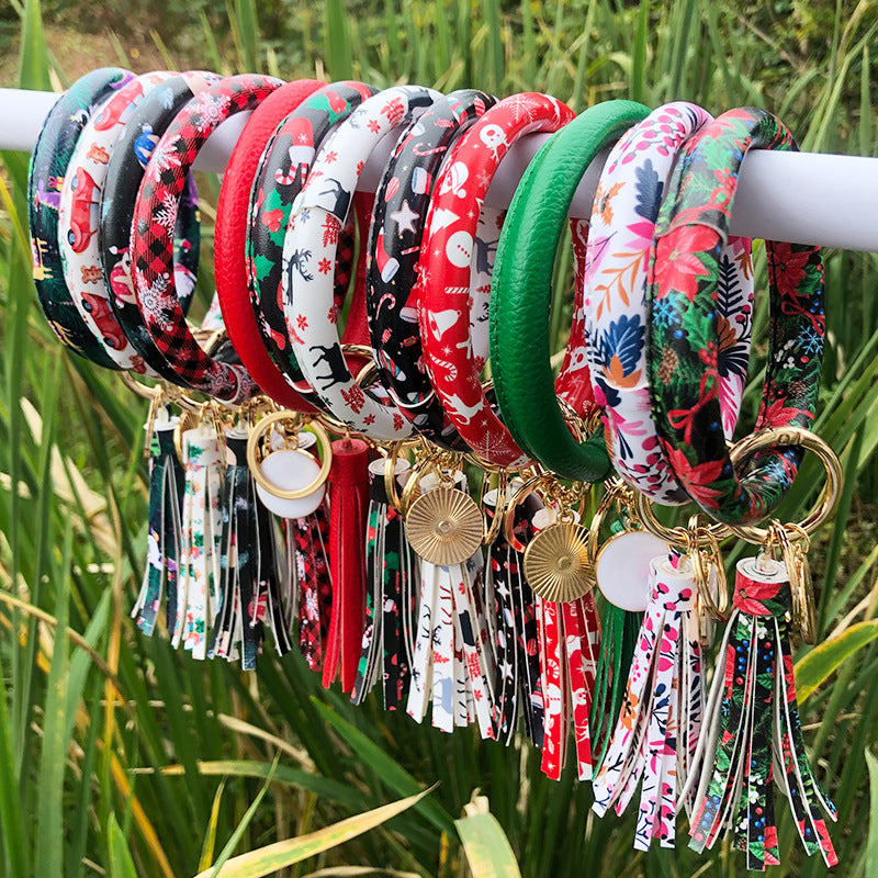 Wholesale Christmas Leaves Snowflakes Wind Chimes PU Bracelet Keychain