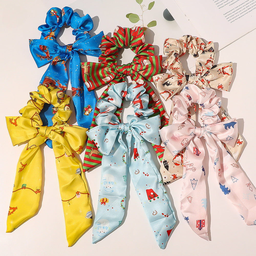 Wholesale Christmas New Bow Ribbon Fabric Hair Tie