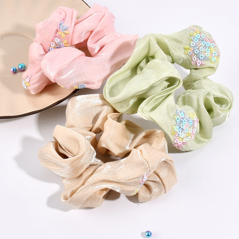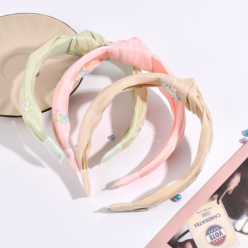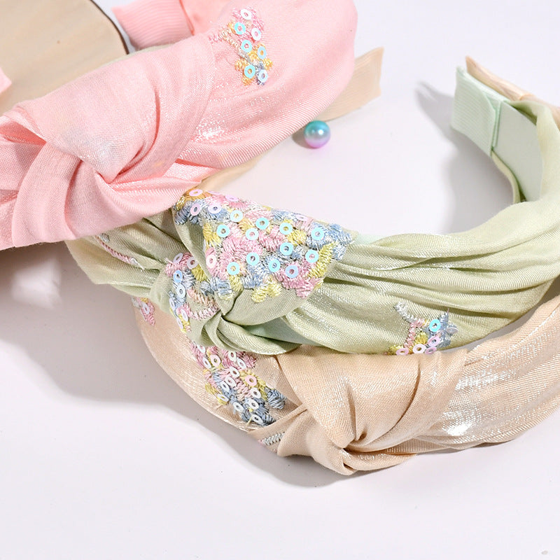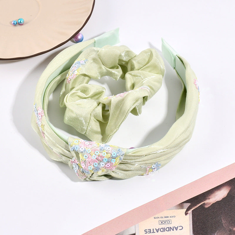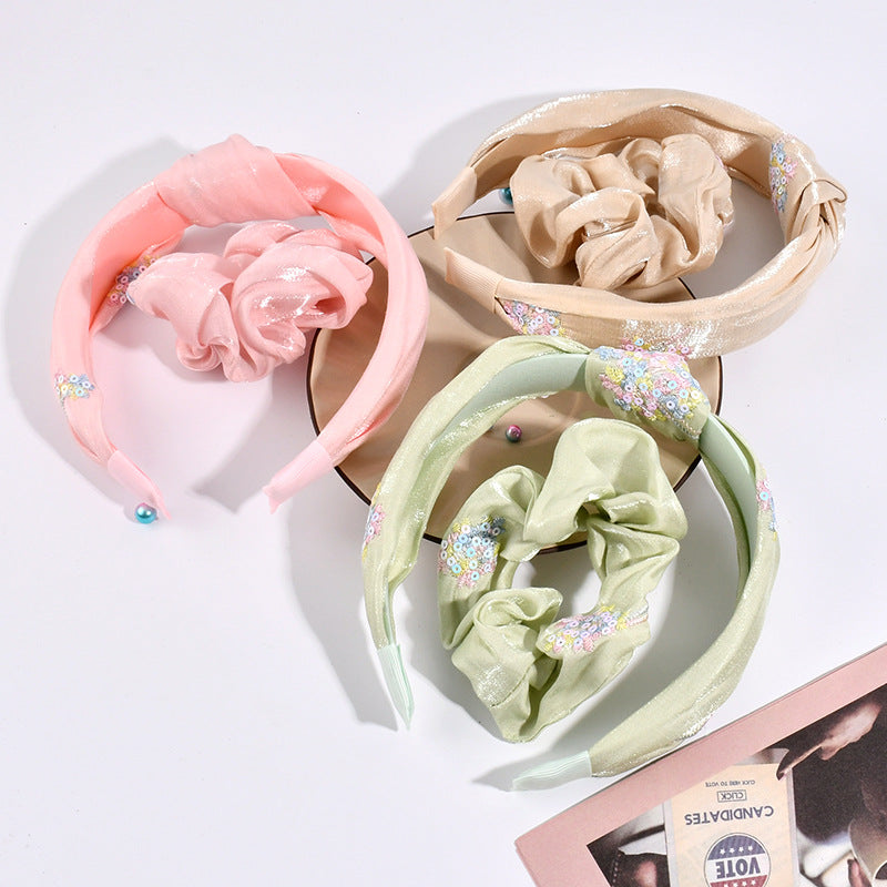 Wholesale Embroidered Bow Knot Fabric Hair Tie Headband Combination Set