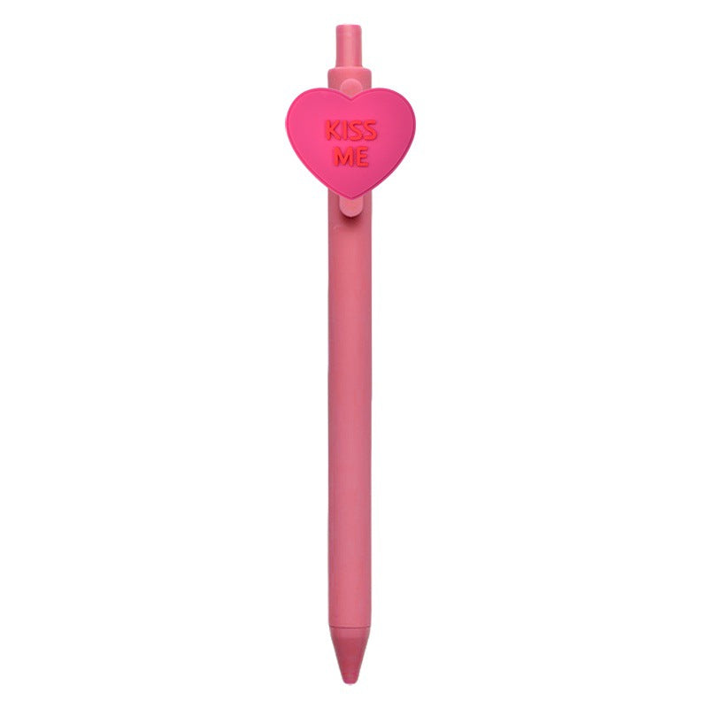 Wholesale 10pcs Pink Heart Pvc Soft Glue Push-Type Ballpoint Plastic Pen