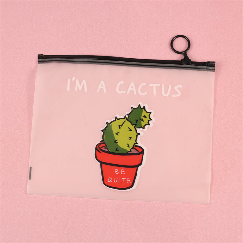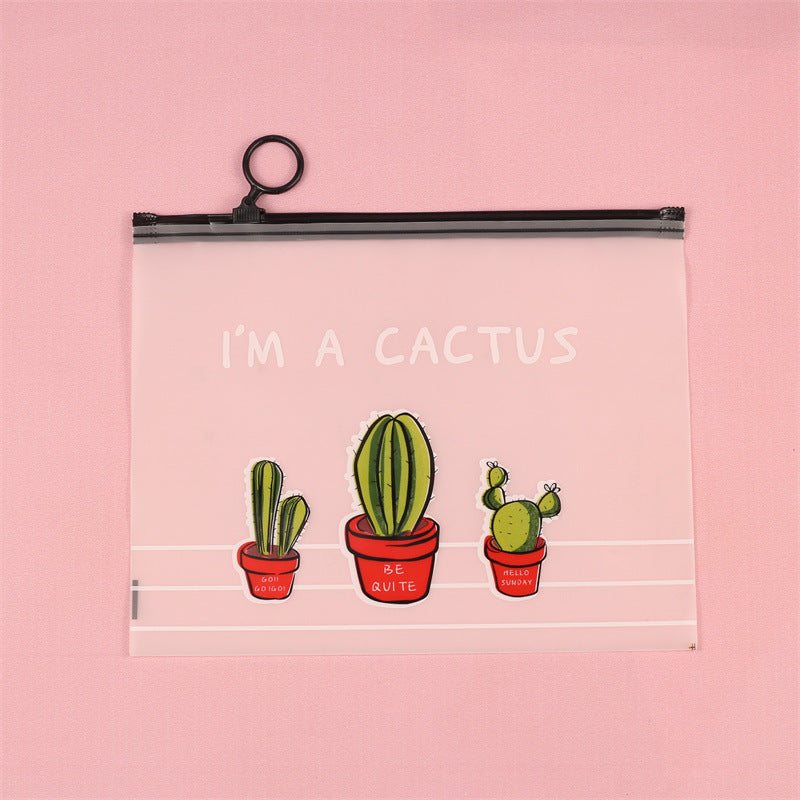 Wholesale Plastic Cartoon Cactus Zipper Document Bag
