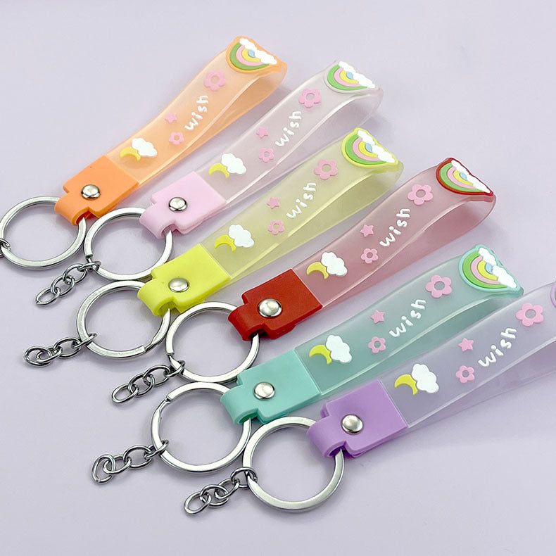 Wholesale PVC Rainbow Jelly Leather Rope Keychain