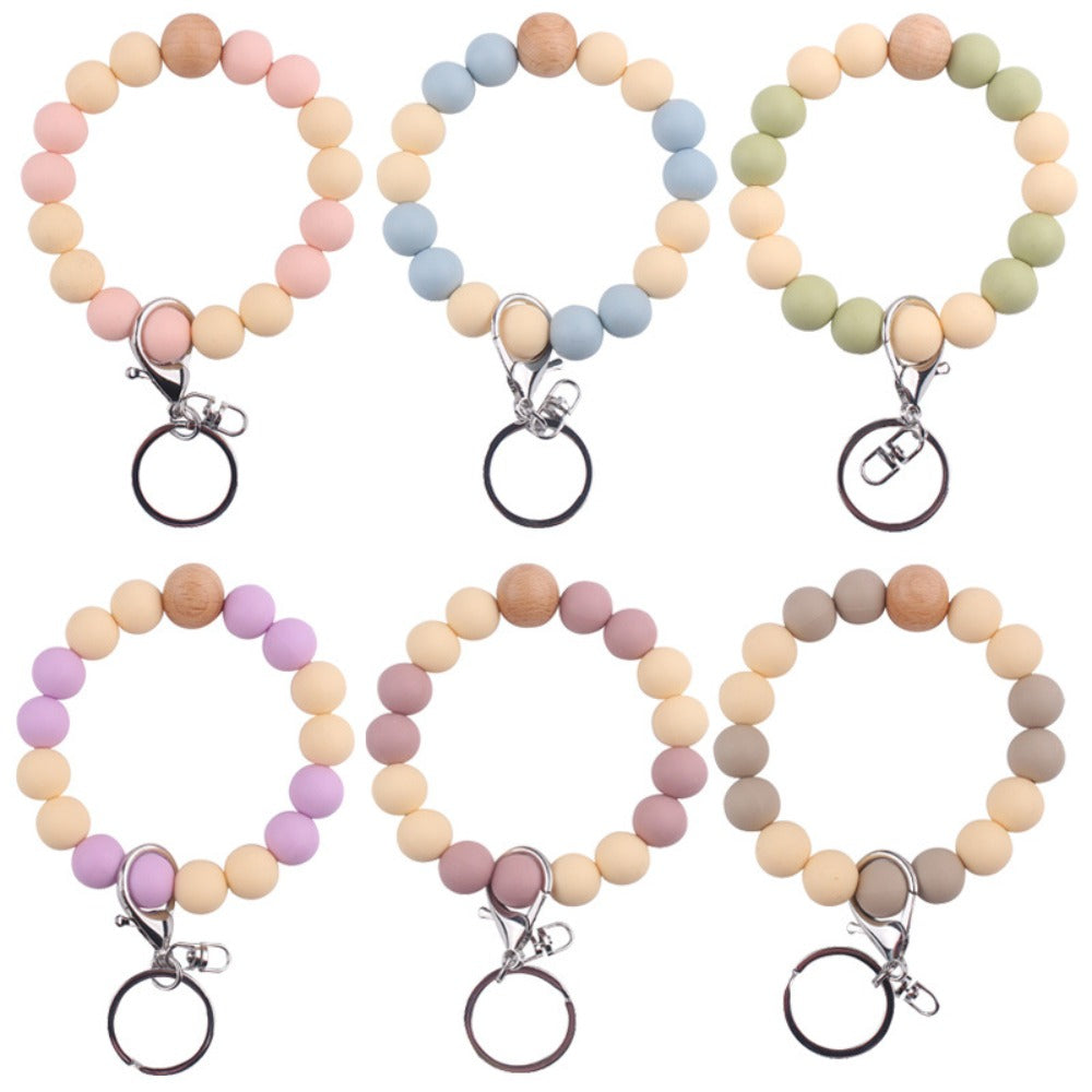 Wholesale Solid Color Silicone Beaded Wrist Keychain