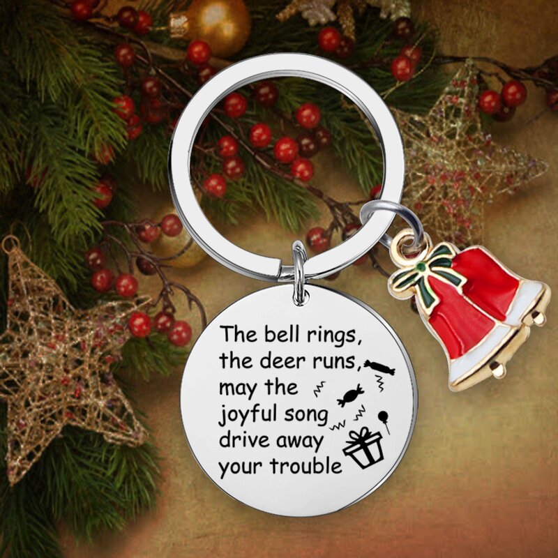 Wholesale Stainless Steel Christmas Bell Circle Sign Engraving Stainless Steel Keychain
