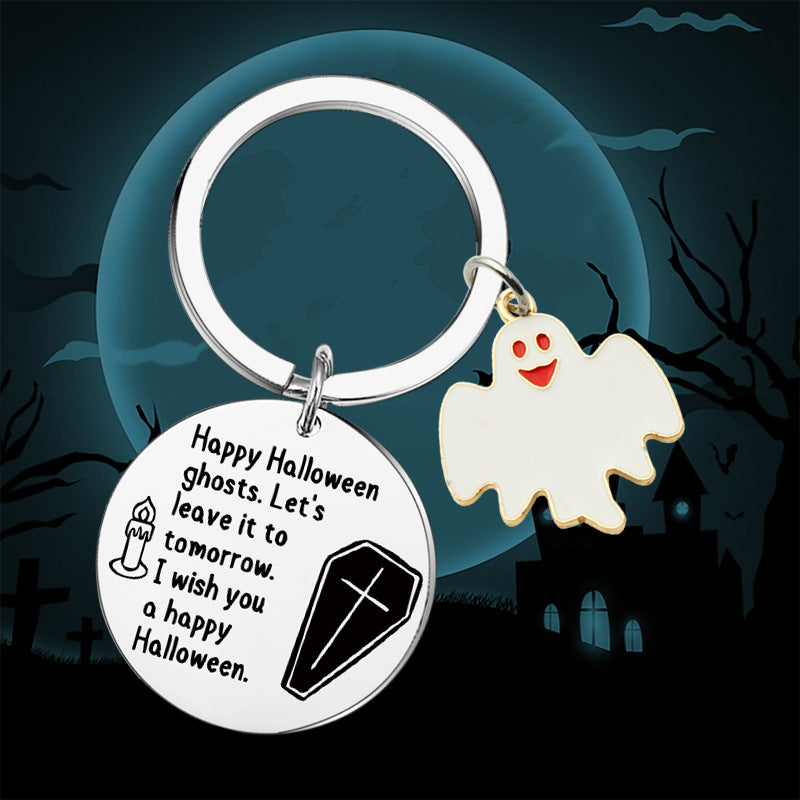Wholesale Stainless Steel Halloween Round Tag Keychain