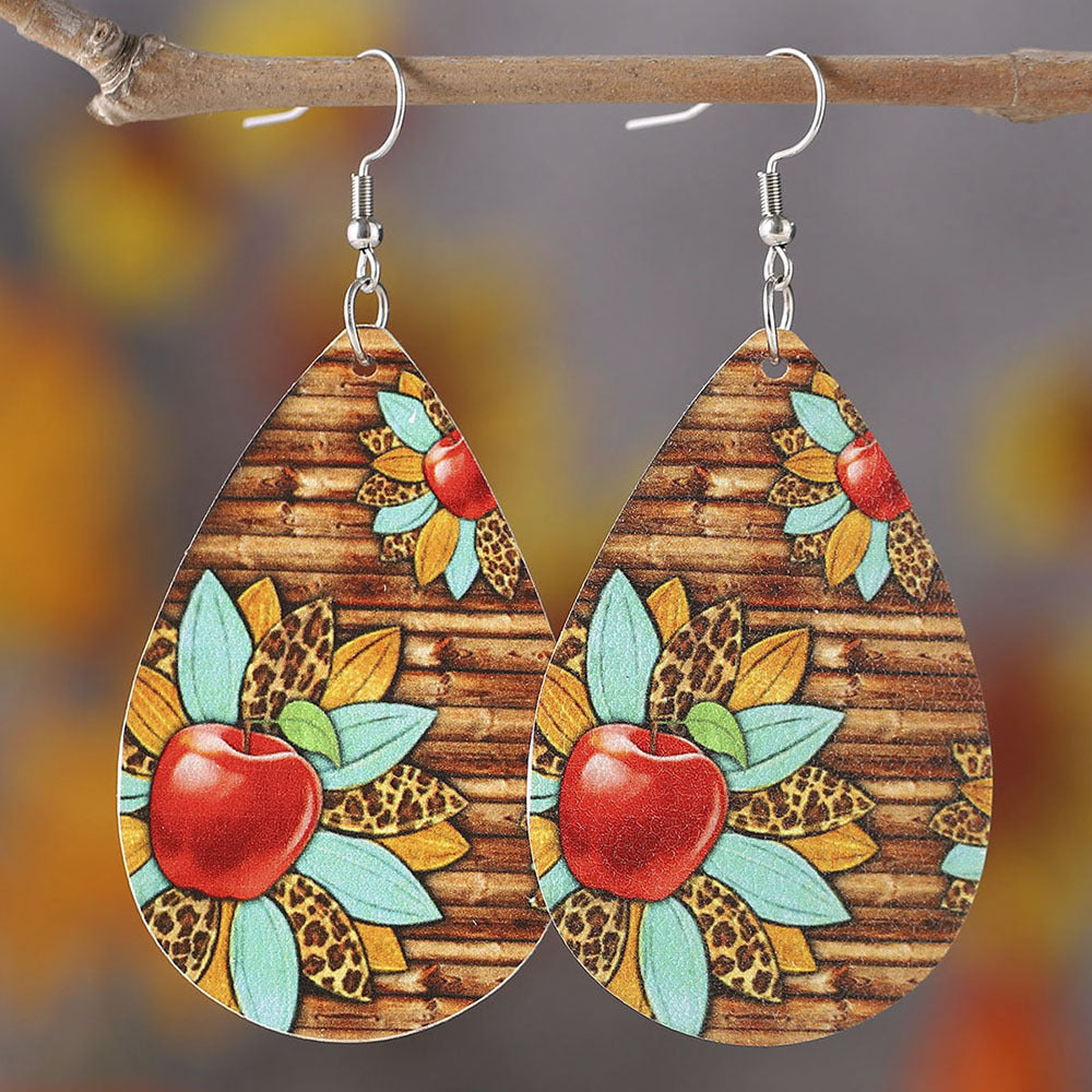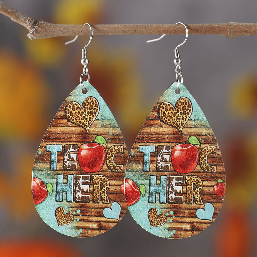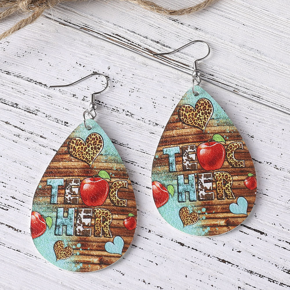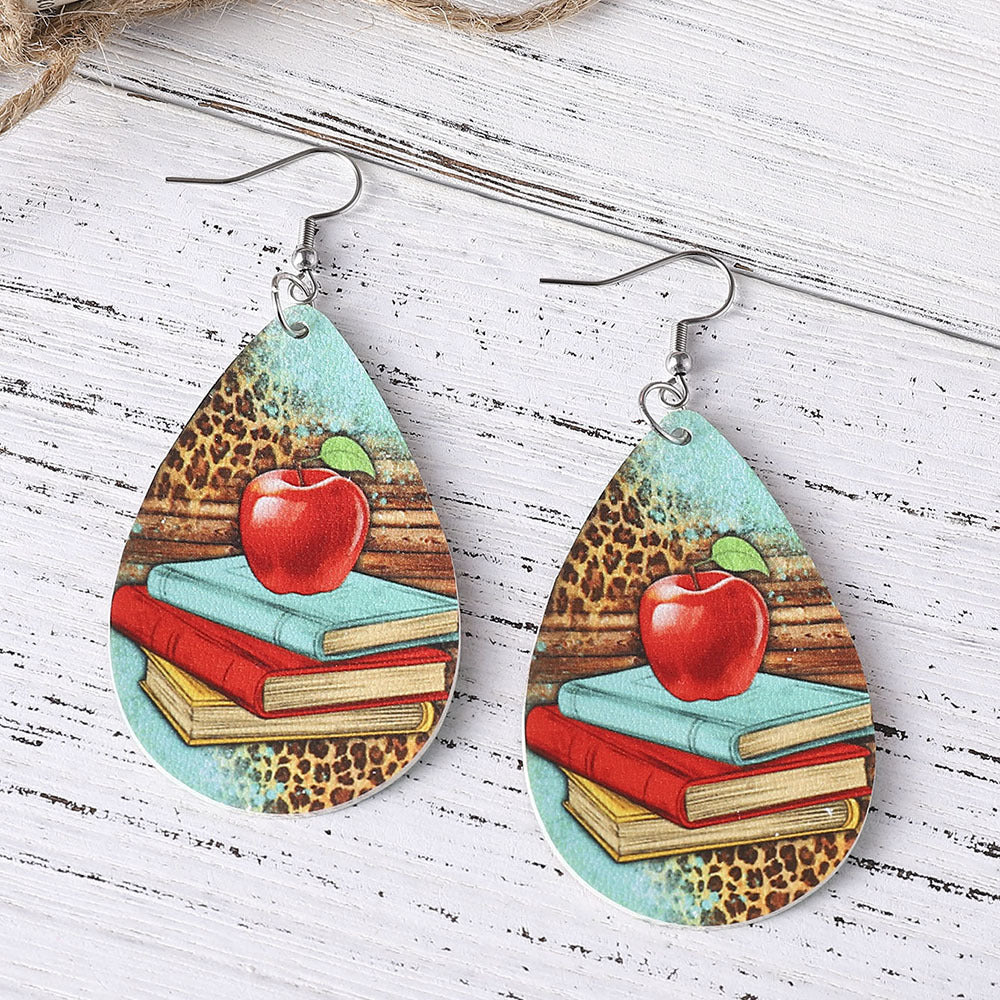 Wholesale Teacher Apple Leopard Leather Drop Earrings