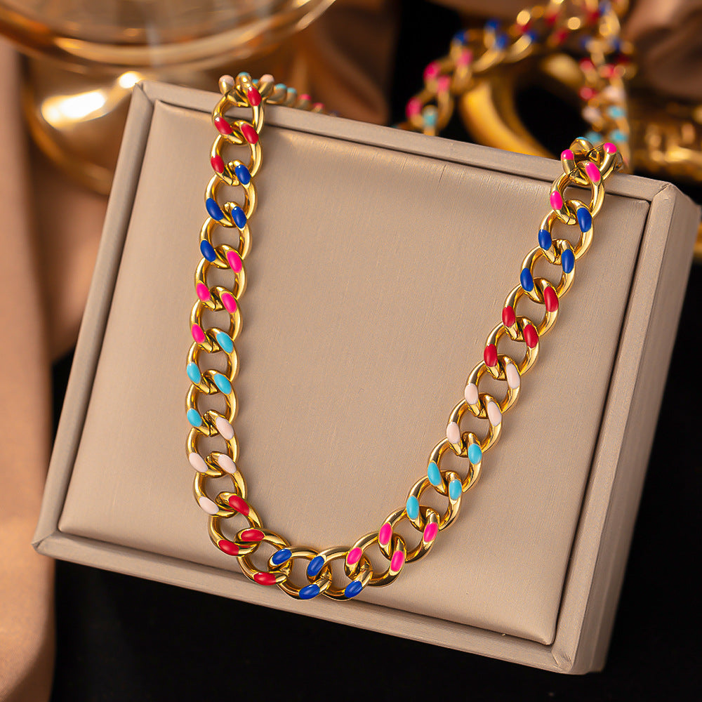 Wholesale Titanium Steel Enamel Color Oil Drop Cuban Chain