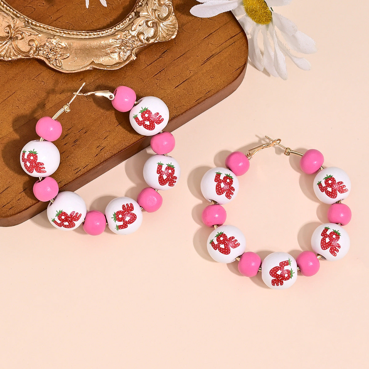 Wholesale Valentine's Day Romantic Love Love Print Wooden Bead Earrings Sweet Personality Beaded Hollow Ear Ring Ear