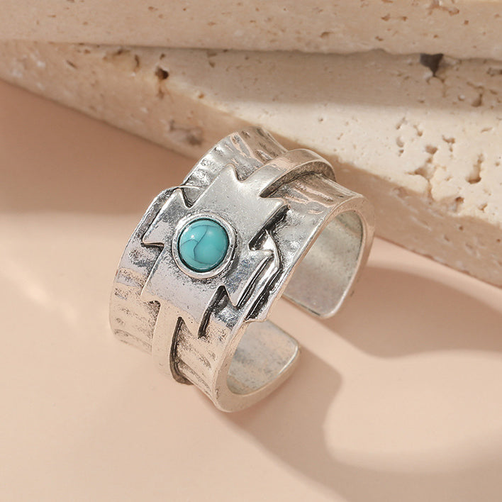 Wholesale Vintage Alloy Inlaid Turquoise Wide-rim Open Ring