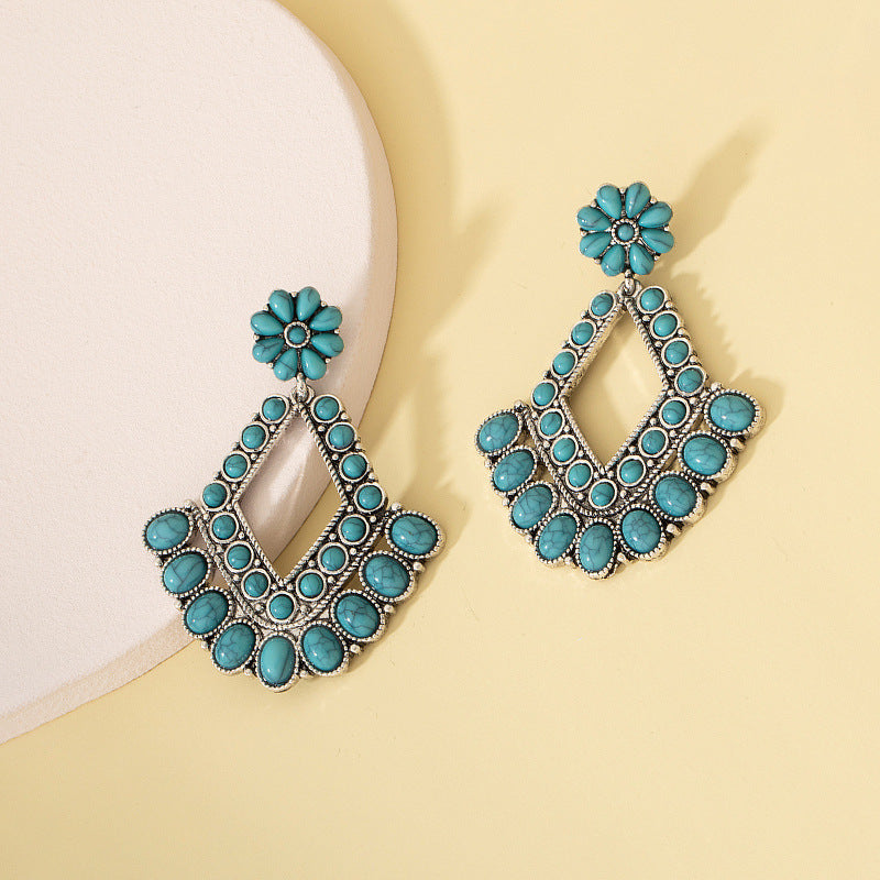 Wholesale Vintage Bohemian Drop Scalloped Turquoise Exaggerated Earrings